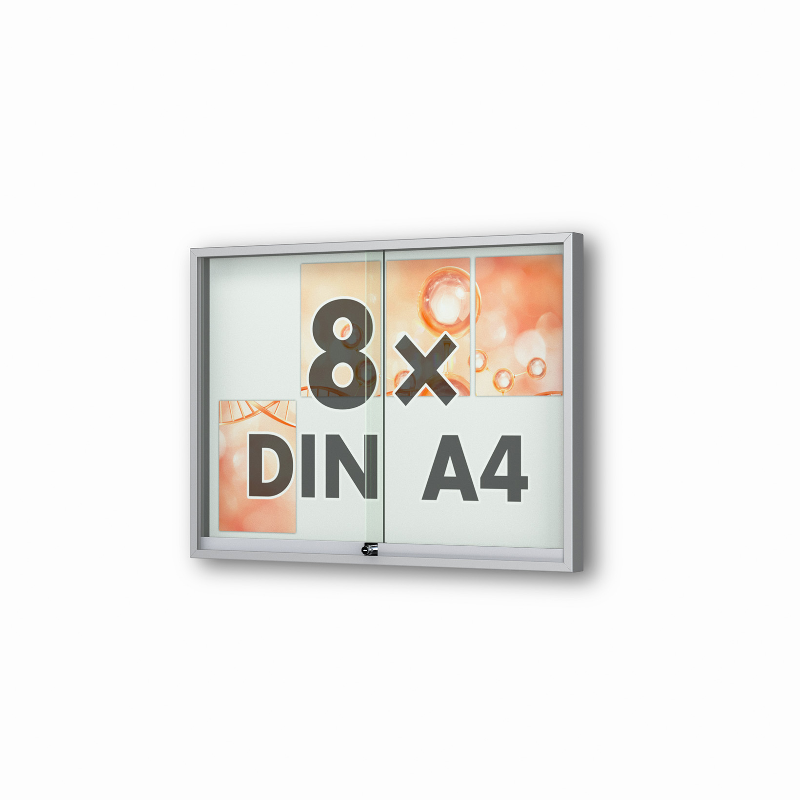Die eckigen Gehäusevarianten unseres FORTIS Schiebetürschaukastens werden gerne verwendet, um mit möglichst schmalen Fugen in Mauernischen eingebaut zu werden. Je nach örtlichen Gegebenheiten sind damit nahezu flächenbündige Plakataushänge und Info-Boards realisierbar. Selbstverständlich sind die FORTIS-Schaukästen auch für eine übliche Wandmontage hervorragend geeignet.