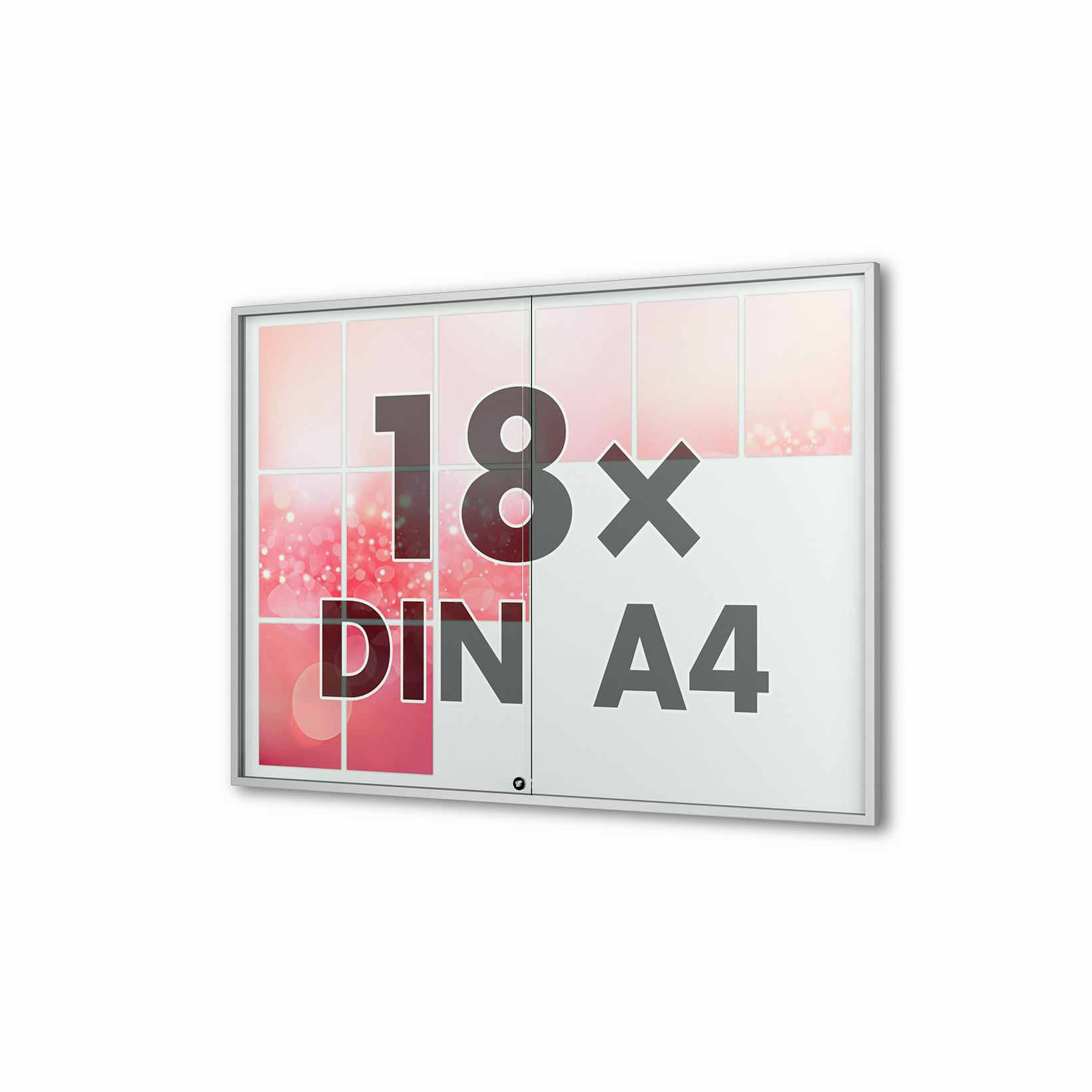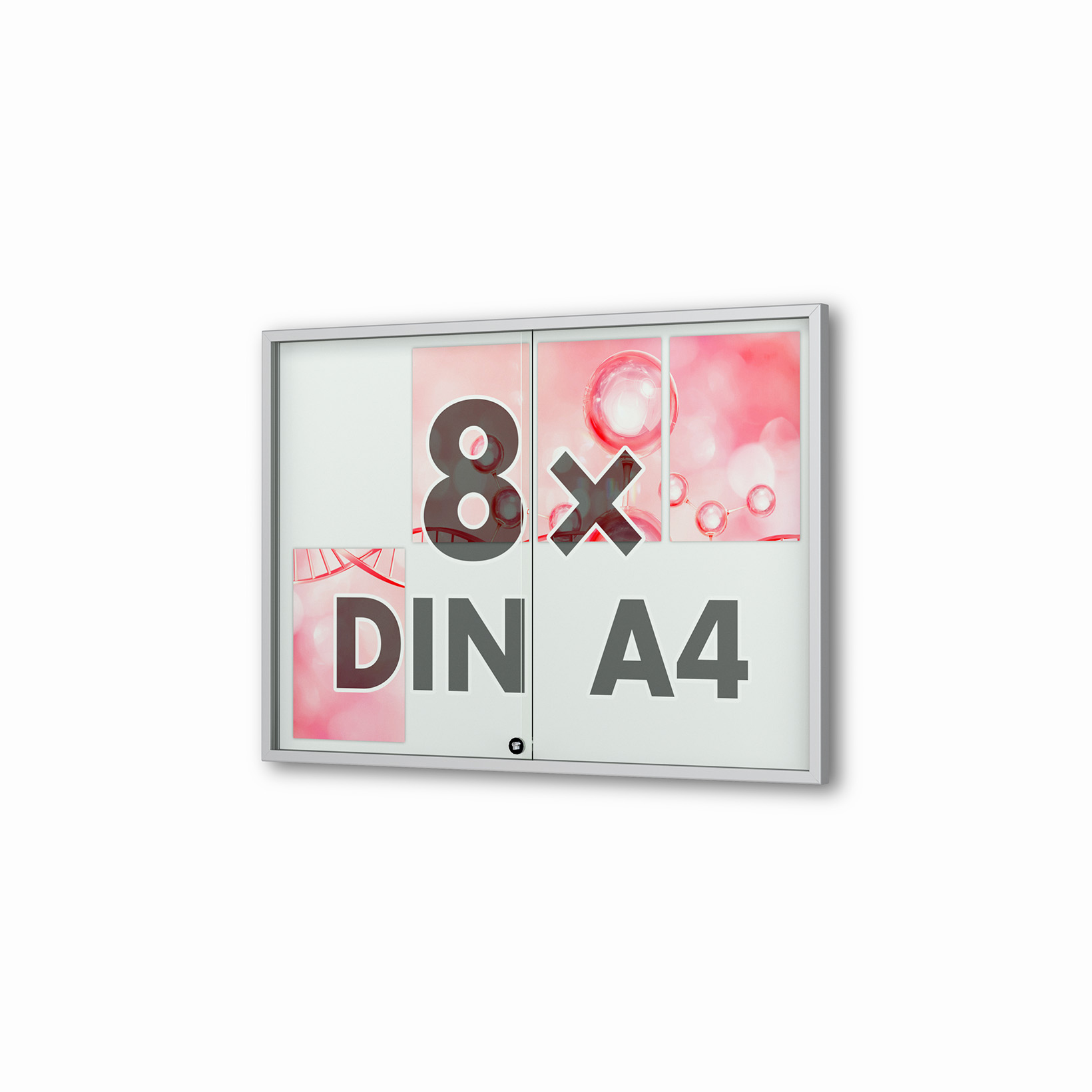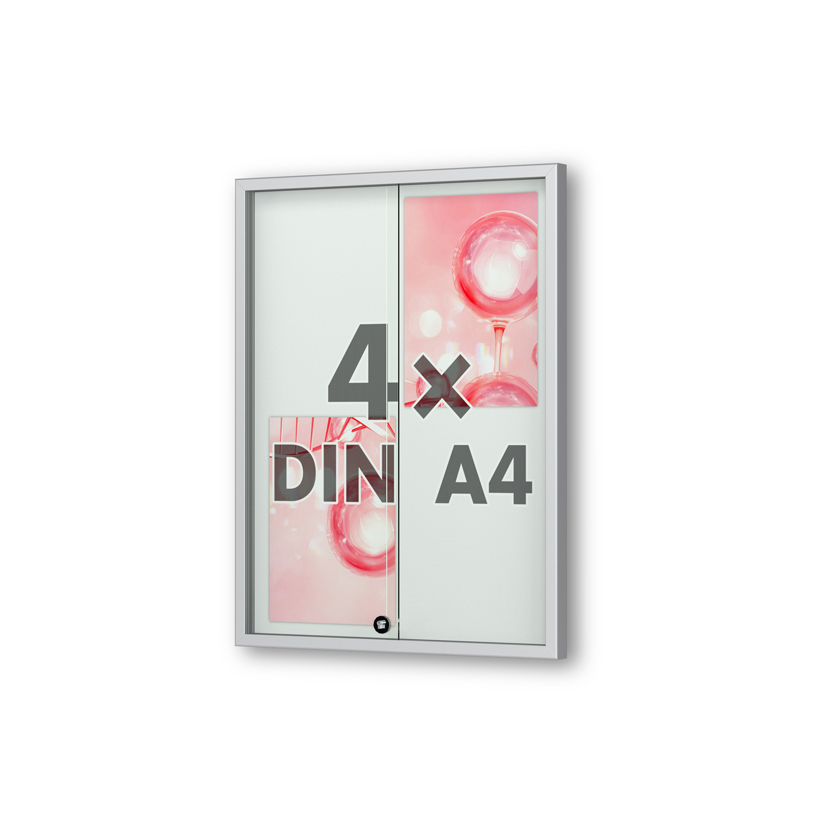 Das beliebte Einsteigermodell bei unseren Schaukästen mit Schiebetüren für den einfachen Aushang. Mit nur 30 mm Gehäusetiefe erlaubt der Flachschaukasten die Anwendung in beengten Platzverhältnissen, zumal die Schiebetüren bei der Bestückung des Schaukastens nicht in den Laufbereich hineinragen. Durch die Verwendung von ESG-Schiebetüren wird zudem der Brandschutz bei diesem Schaukastenmodell erheblich erhöht.