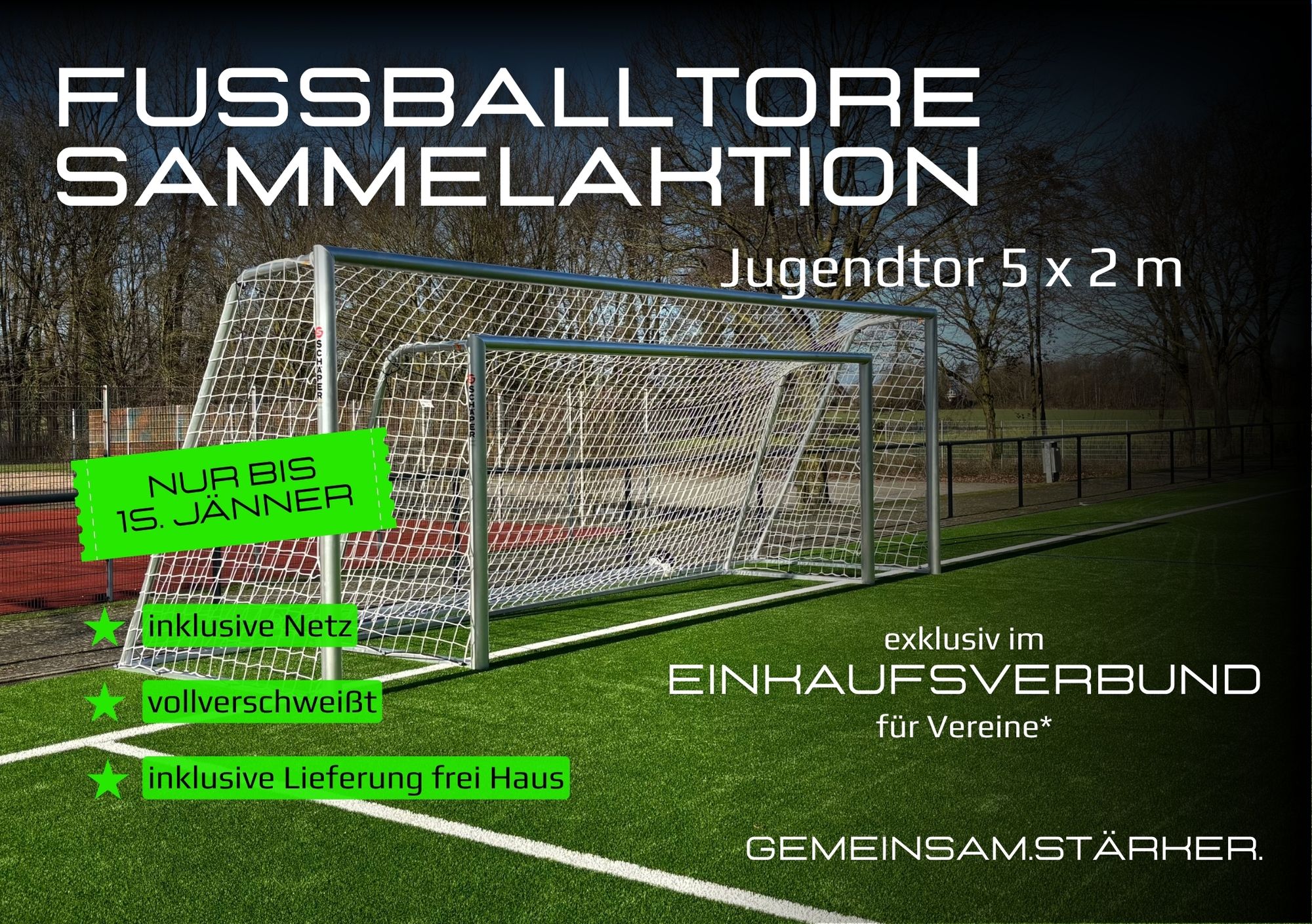 Jetzt bis 15. Jänner 2026 vorbestellen und zusammen sparen. Für alle Vereine in Niederösterreich, Wien, Burgenland und Oberösterreich. Die Lieferung erfolgt ab KW 14 / 2026.