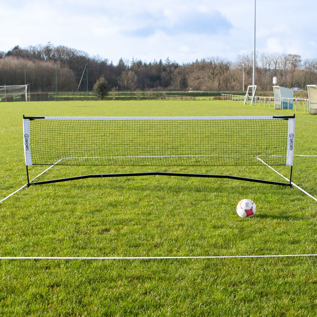 Das Kit enthält eine Rolle, ein 50 m langes Gummiband und 15 Heringe. Es ist sehr nützlich für die Abgrenzung von Spielflächen jeglicher Art (Tennisplatz, Ballaufbewahrungsbereich usw.).