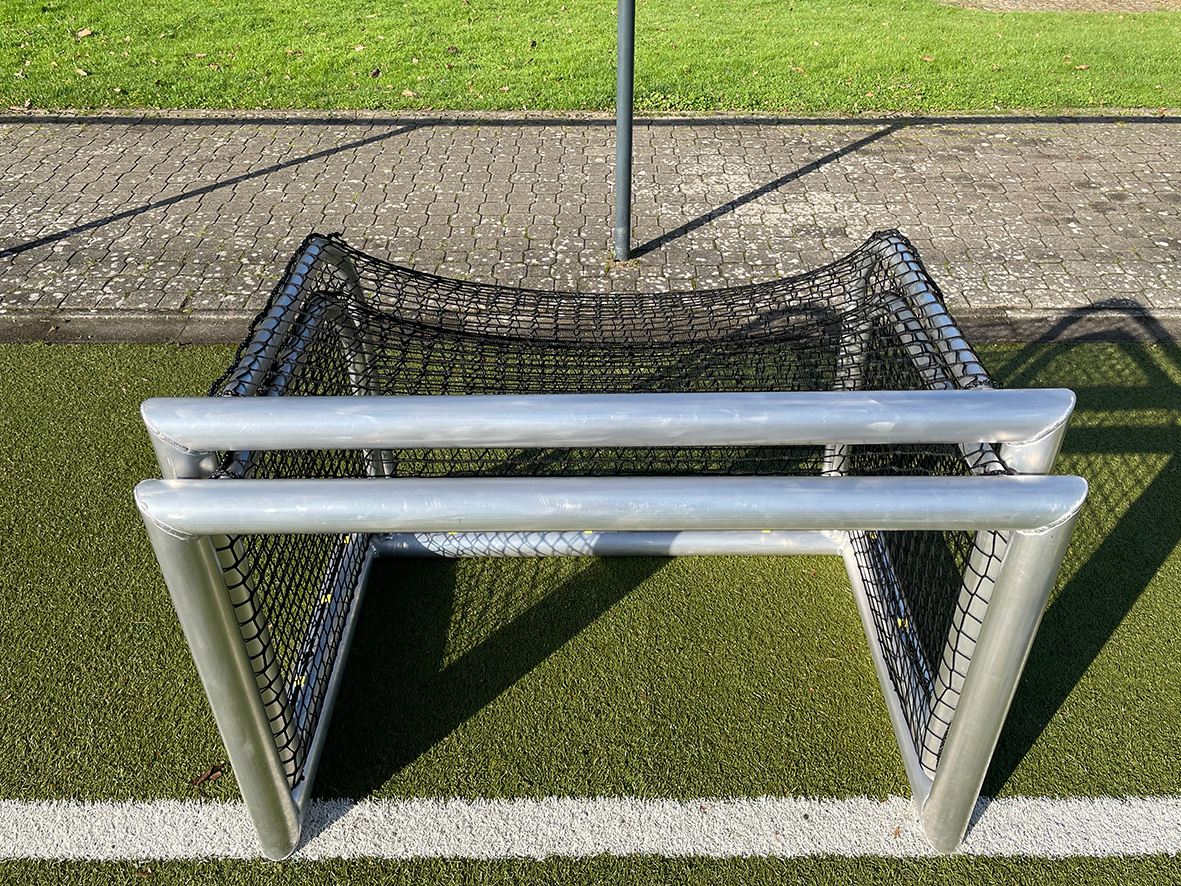 Extrem robuste Minifußballtore aus Aluminium in verschiedenen Größen, vollverschweißt. Torrahmen und Bodenrahmen aus Rundprofil 80 x 80 x 2,5 mm. Bei den vollverschweißten Varianten sind Vorderrahmen, Netzbügel und Bodenrahmen komplett miteinander verschweißt. Die hintere Tiefe (Auslage) des Tores beträgt 70 cm. Inklusive schwarzem Tornetz aus 2,5 mm PP. Die Maschenweite von 4,5 cm garantiert einen optisch guten Eindruck