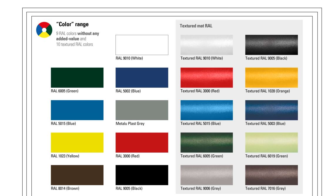 Weitere Gestell- bzw. Aluminiumprofil-RAL Farben auf Anfrage möglich – siehe Bildübersicht – eine Sonderfarbe pro Bestellung möglich, ansonsten fallen zusätzliche Kosten an – die Lieferzeit kann sich bei Sonderbestellungen unbestimmt verlängern.