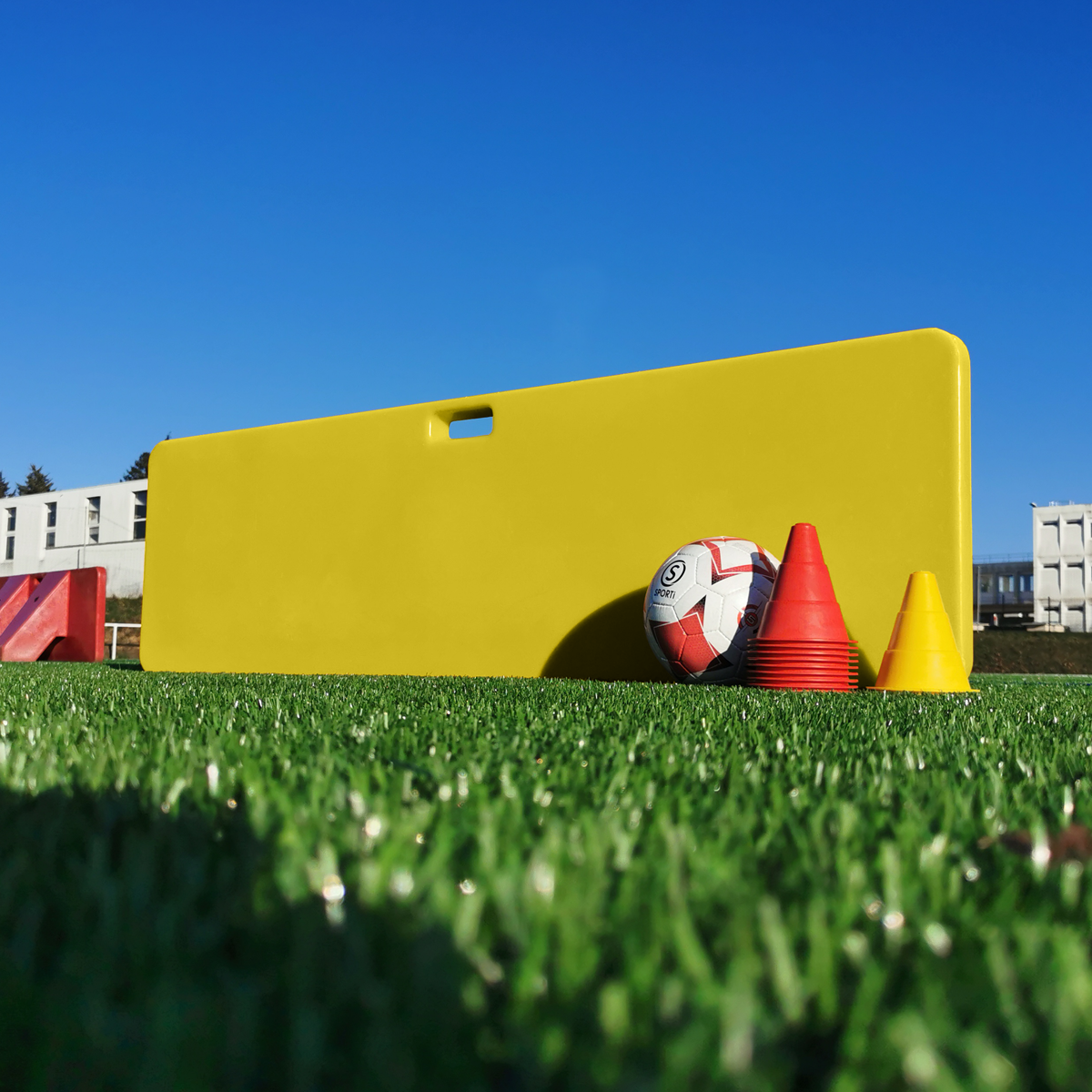 „L´Original“ Das bewährte Fußball-Rebound-Board. Dank seiner gewichteten Basis, seiner Ausgewogenheit und seiner langlebigen Komponenten ist es ein Leichtes, die natürlichen Qualitäten eines Passes oder eines Schusses zu reproduzieren. Das Rebound-Board bietet unbegrenzte Möglichkeiten für Ihre Pass- und Sequenzübungen, Rückschläge und Schüsse. Allein oder in der Gruppe kann es als Doppelbahn, Schussziel, Staffel oder sogar als Minitor genutzt werden. Hochbeständige und extrem langlebige Materialien. Alle Komponenten wurden aufgrund ihrer Zuverlässigkeit und hohen Reaktionsfähigkeit ausgewählt. Besonderes Augenmerk wurde auf die dauerhafte Ebenheit der Kontaktfläche und die Qualität des Rückpralls gelegt. Darüber hinaus sorgt die Gewichtsverteilung für hervorragende Stabilität und perfekte Balance auch bei den kraftvollsten Schüssen.