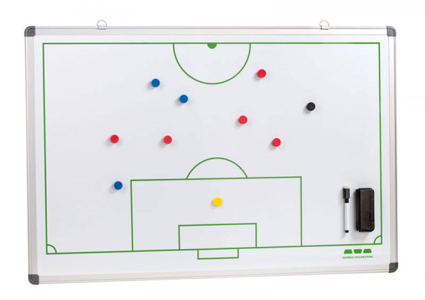 Mit der saller Magnet-Taktiktafel steht einer perfekten Vorbereitung zu den Fußballspielen nichts mehr im Wege. Auf der magnetischen Spezialbeschichtung lassen sich Spielzüge mit Magneten besonders gut darstellen, aber auch Taktiken mit dem Boardmarker verdeutlichen.
